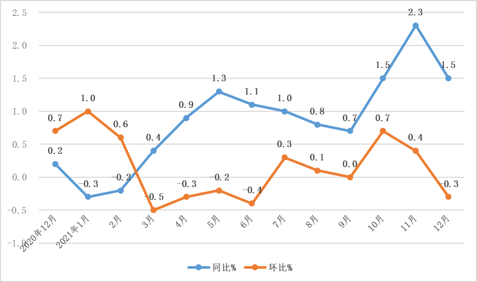 2021年12月份CPI同比上漲1.5%